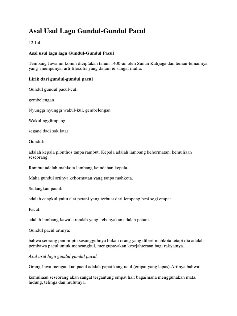 Lirik Lagu Gundul Gundul Pacul Brainly / Ajukan pertanyaan tentang tugas sekolahmu. Lirik Lagu Gundul Gundul Pacul Brainly / C c gundul gundul pacul cul c c gembe.le.ngan c c gundul gundul pacul cul c c gembe.le.ngan.